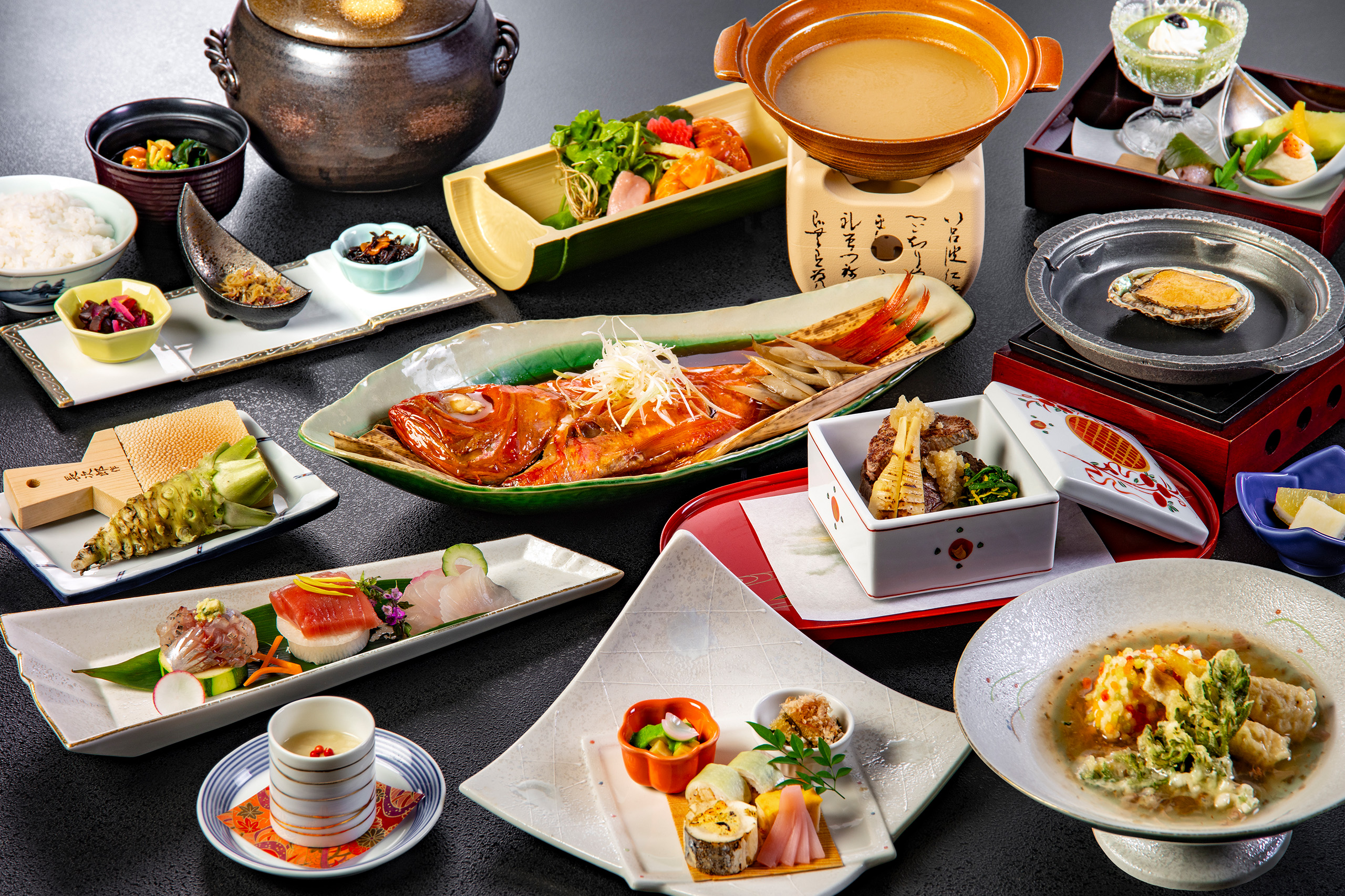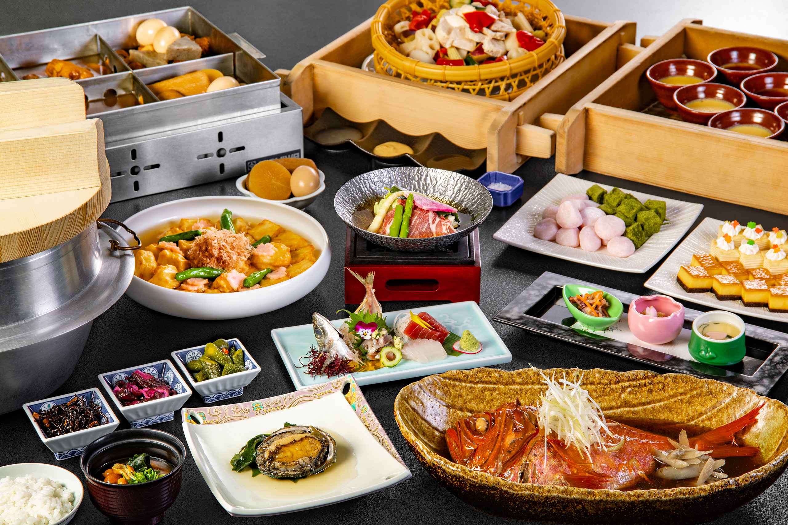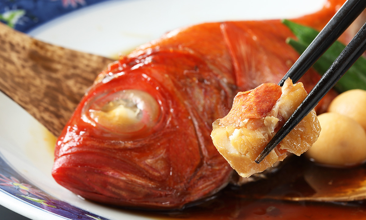伊東小涌園の名物、秘伝のタレで煮込んだ金目鯛煮付けもご堪能いただけます。
