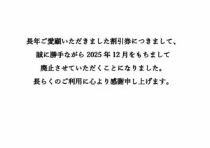 長年ご愛顧いただきました割引券につきまして